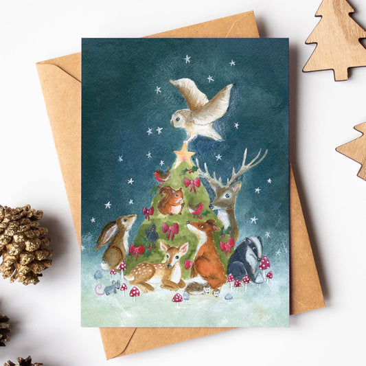 Dressing The Tree Card | Woodland Animal Christmas Card | Festive Animals