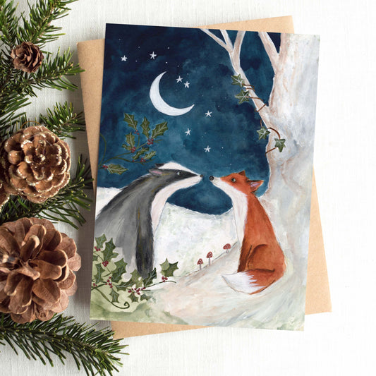 Yule Encounter Card | Woodland Animal Festive Card | Fox & Badger