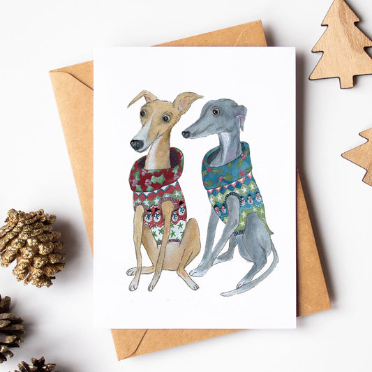 Christmas Jumpers Card | Whippet Christmas Card | Sighthound Festive Card