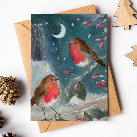 The Tor | Woodland Animal Christmas Card Card | Glastonbury | Robin Festive Card