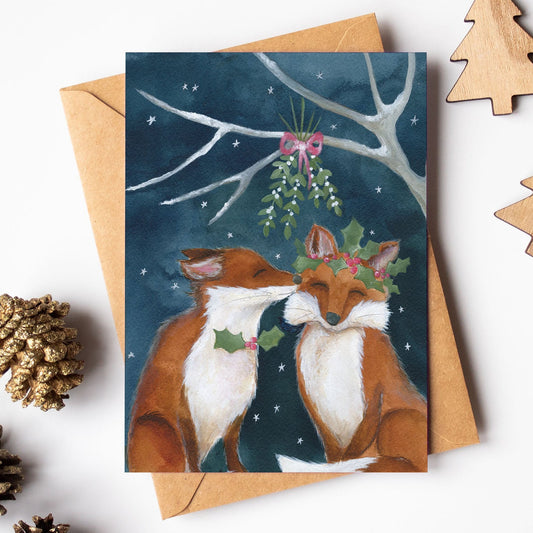Yule Kiss Card | Woodland Animal Christmas Card | Fox Festive Card