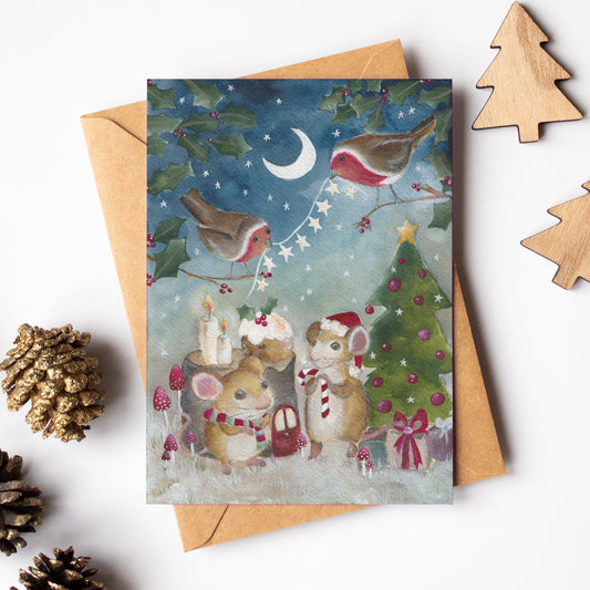 Festive Twinkles Card | Woodland Animal Festive Card | Hedgehog Christmas Card