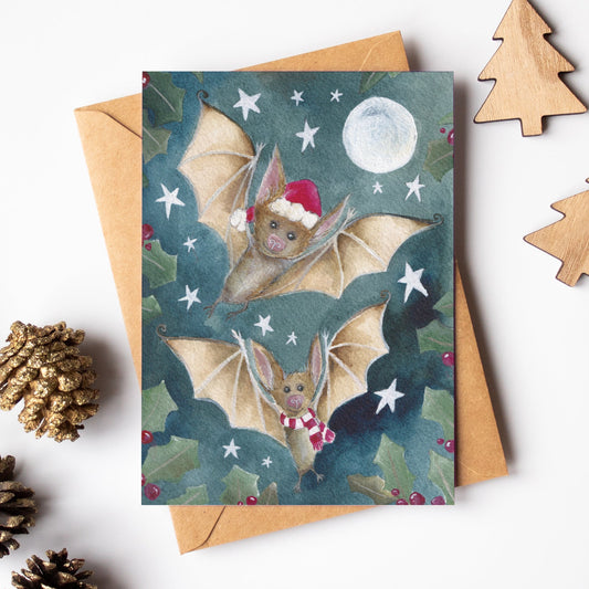 Festive Bats Card | Woodland Animal Christmas Card | Bat Christmas Card