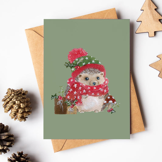 Festive Friend Card | Woodland Animal Festive Card | Hedgehog Christmas Card
