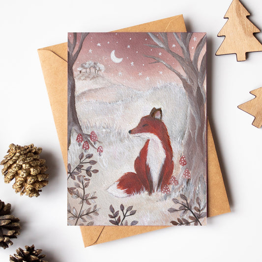 Winters Night Card | Woodland Animal Christmas Card | Fox Festive Card