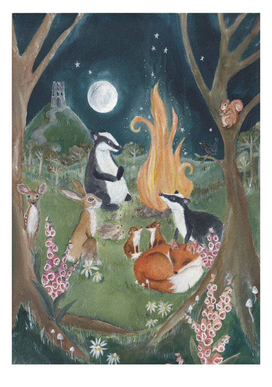 Fox Fine Art Print | Gold Embellished Foxglove Forest