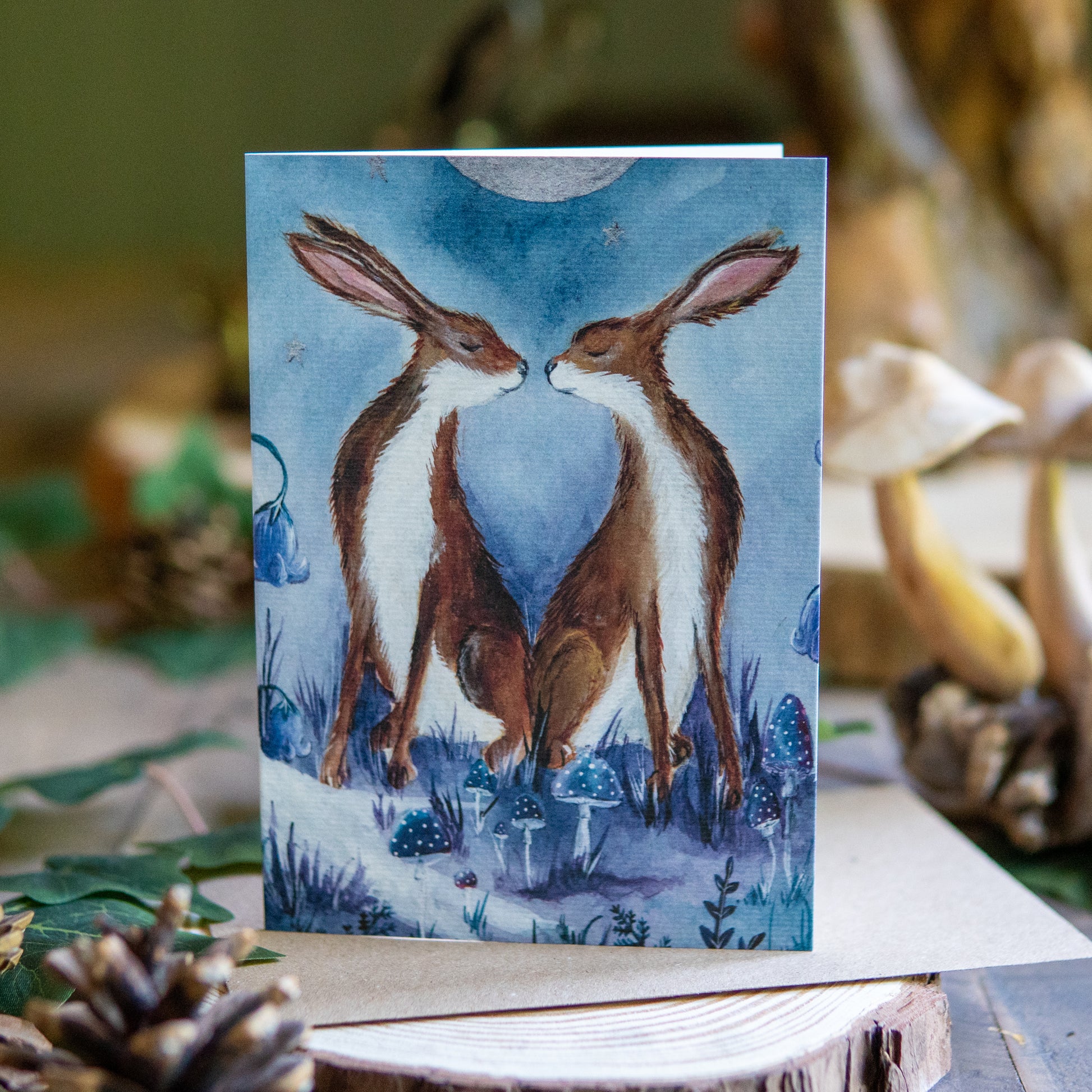An original illustration, titled ‘Beltane Hares’ and part of my Woodland Magic Collection, lovingly designed and painted with acrylic and ink in my Wiltshire Studio, inspired by the countryside where I live.